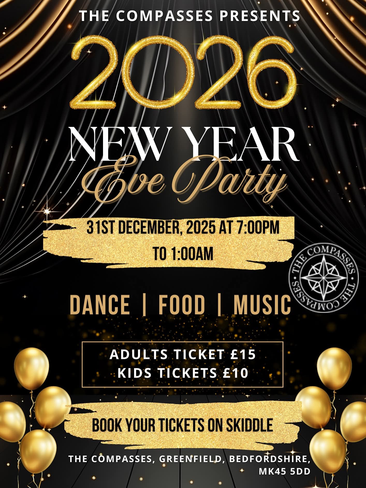 🎊 Family Friendly New Years Eve Party - The Compasses, Greenfield