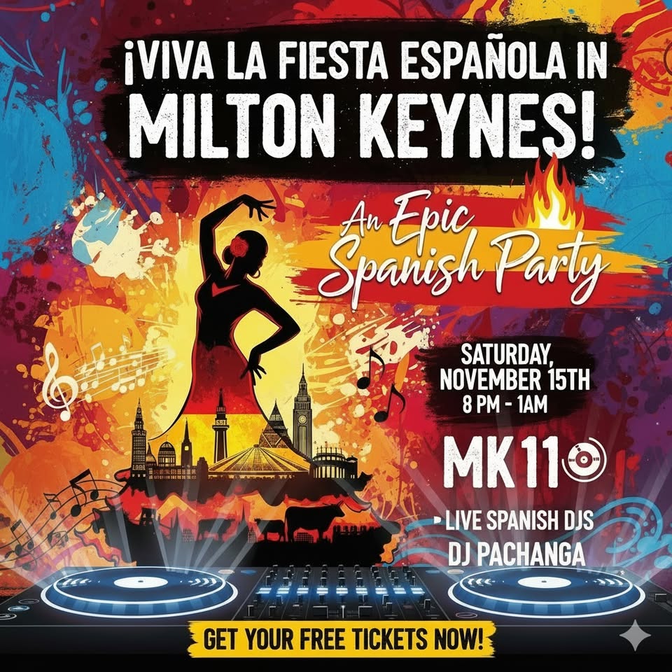 Get ready for an unforgettable night! We're bringing the vibrant spirit of Spain to Milton Keynes with an epic Spanish Party that's open to everyone – whether you're part of the Spanish community or just love the culture, music, and energy!