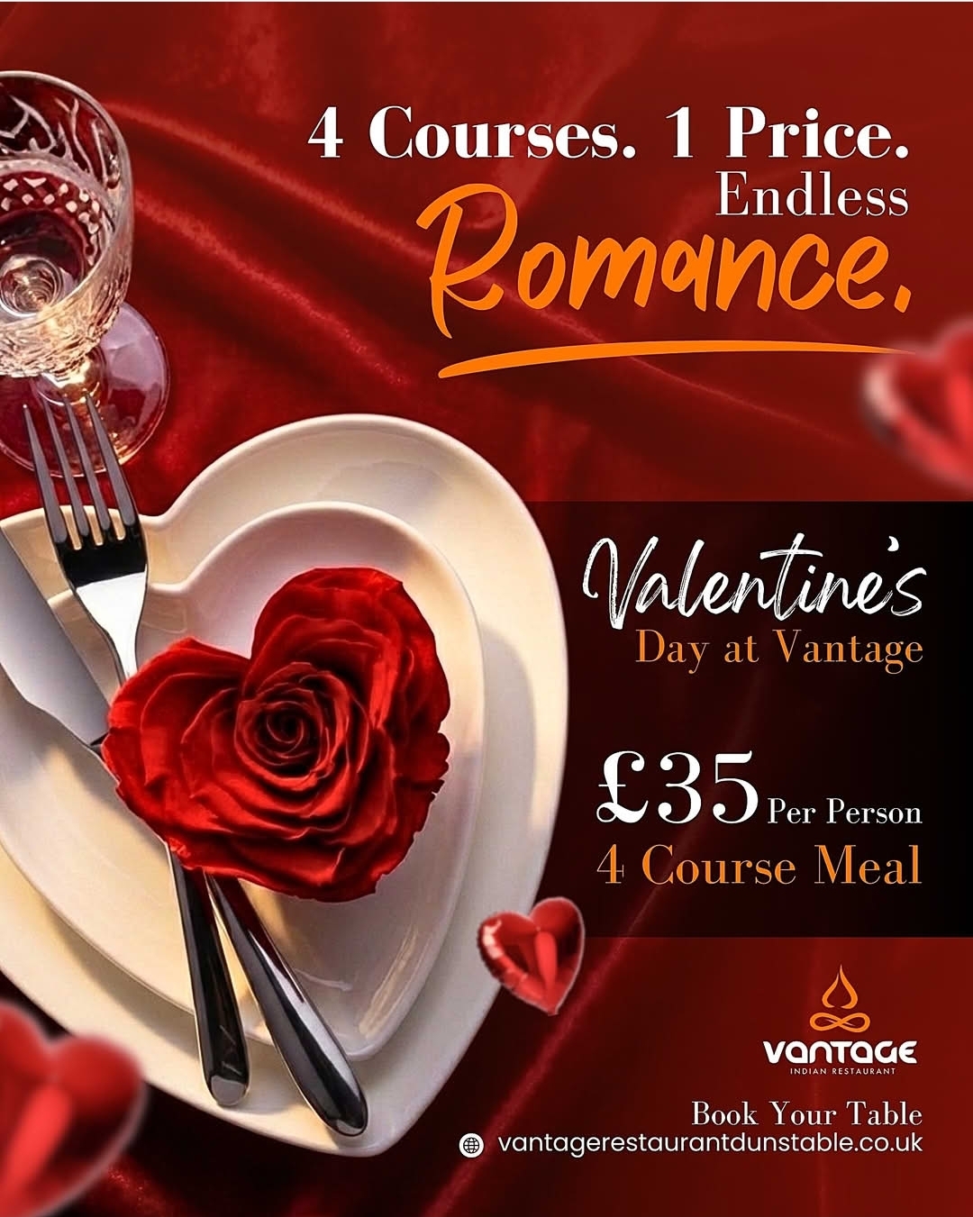 🌹4 Course Meal at Vantage Indian Restaurant, Dunstable - Valentines Day 2026
