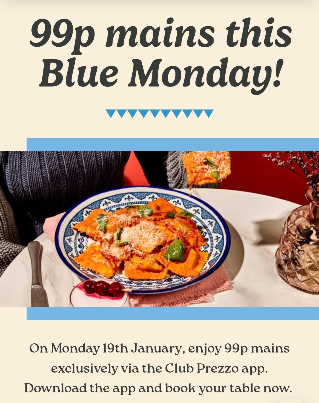 - ▪️Your code entitles you to one 99p Main at any Prezzo Italian Restaurant per person.