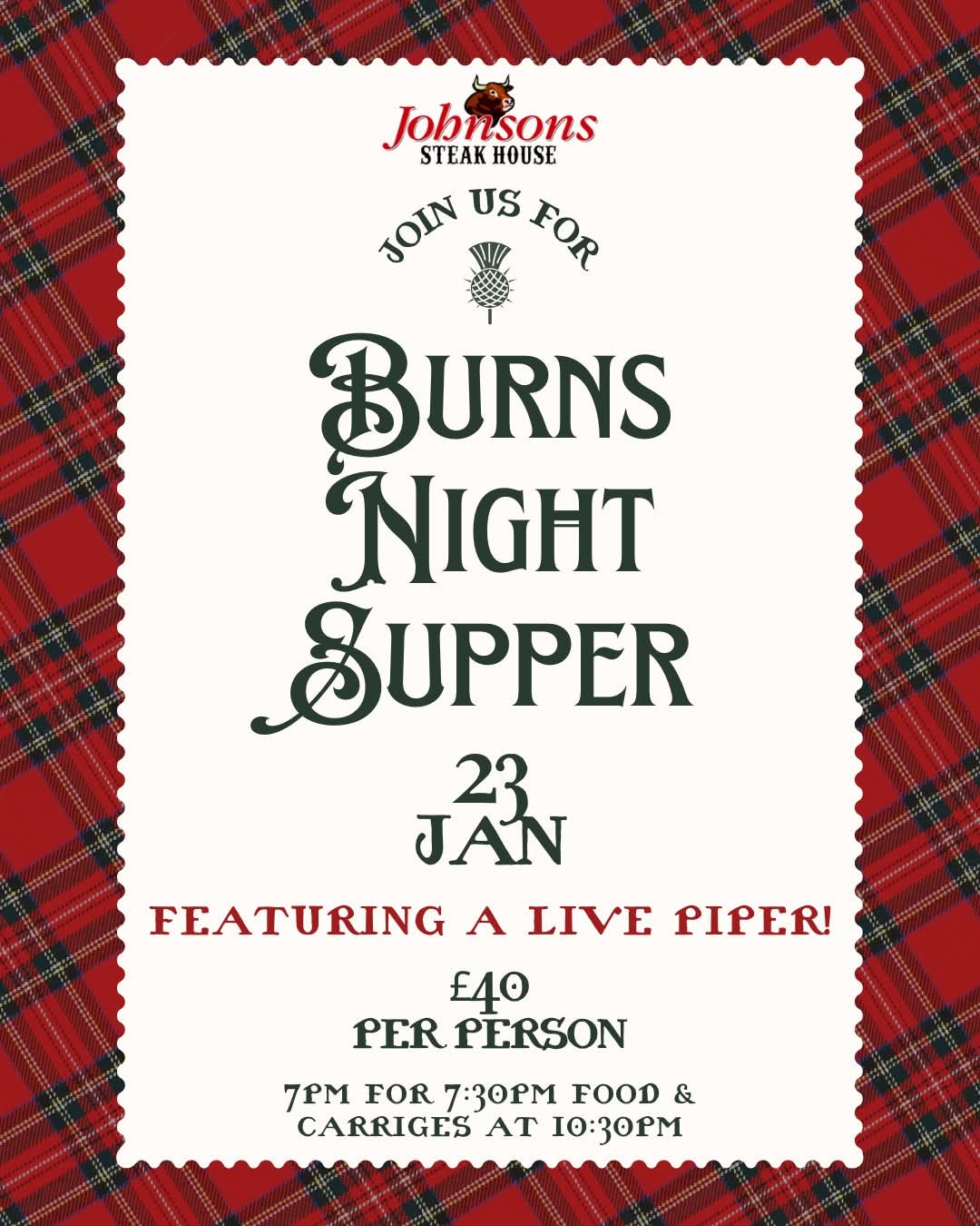 🏴 Burns Night Supper at Johnsons Steak House! 2026