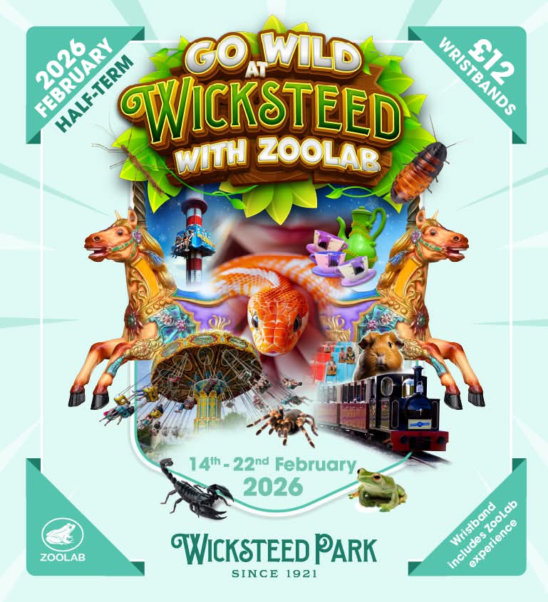 Join us from the 14th February until the 22nd February 2026 for Go Wild at Wicksteed with ZooLab, open 10:30am-4:00pm!