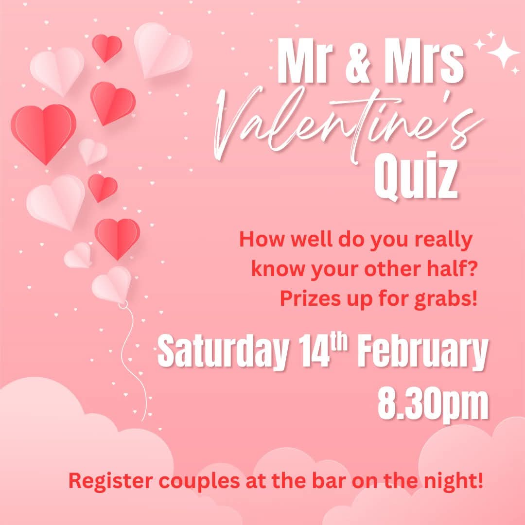 💘 Valentines 2026 Mr & Mrs Quiz - The Crown, Flitwick