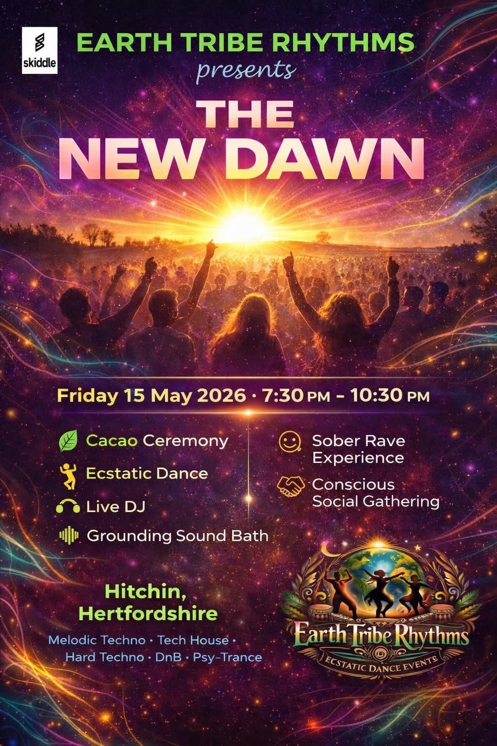 ✨️ Earth Tribe Rhythms “The New Dawn” (Sober Event) - Woodside Hall, Hitchin