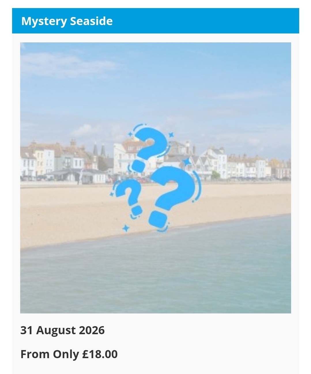 ❓️🏖 Mystery Seaside Coach Tour August 2026 Leaving from Bedfordshire