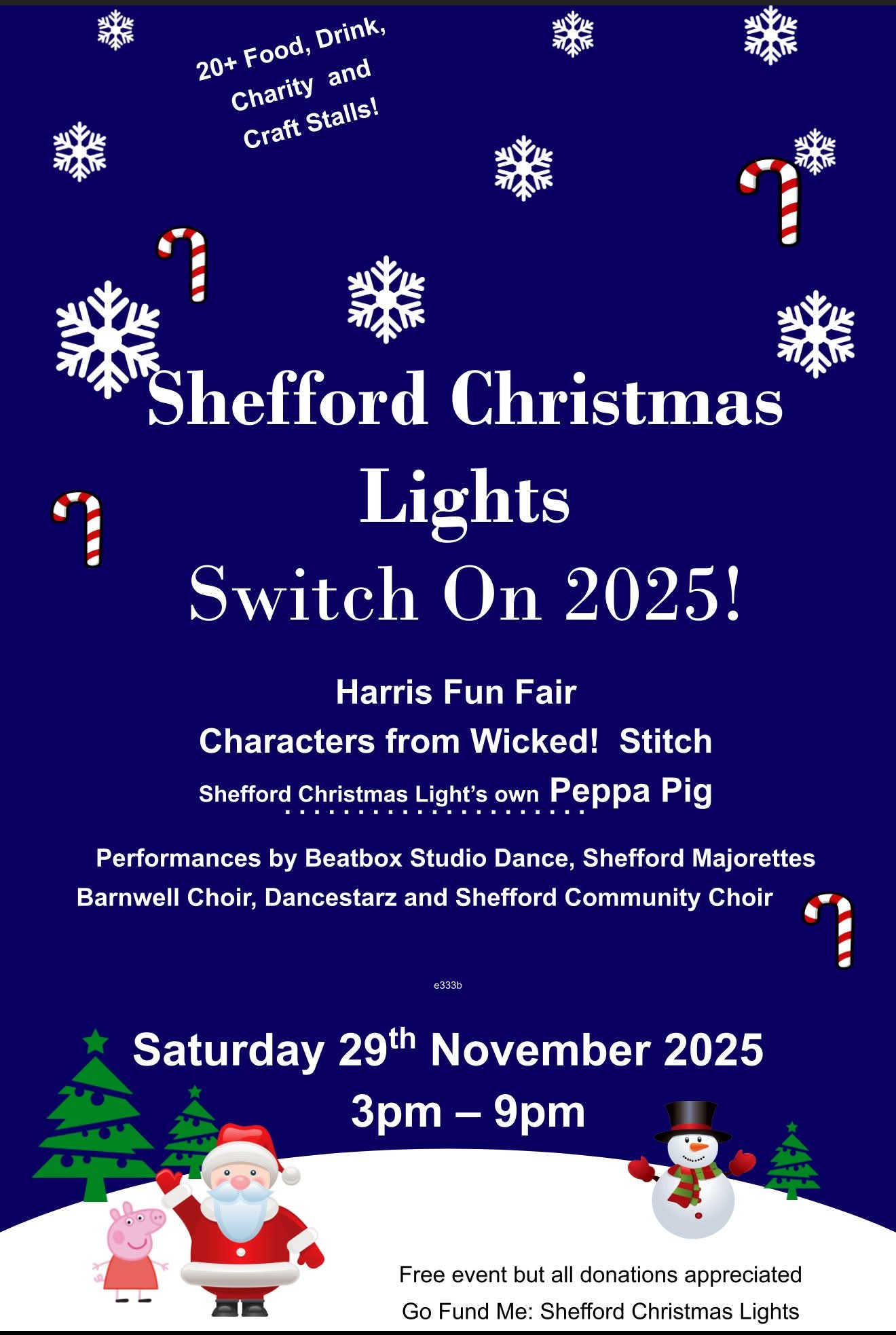 ▪️4:15 PM – Arrival of Be Our Guest characters from Wicked and Stitch, plus Shefford Christmas Lights’ own Peppa Pig