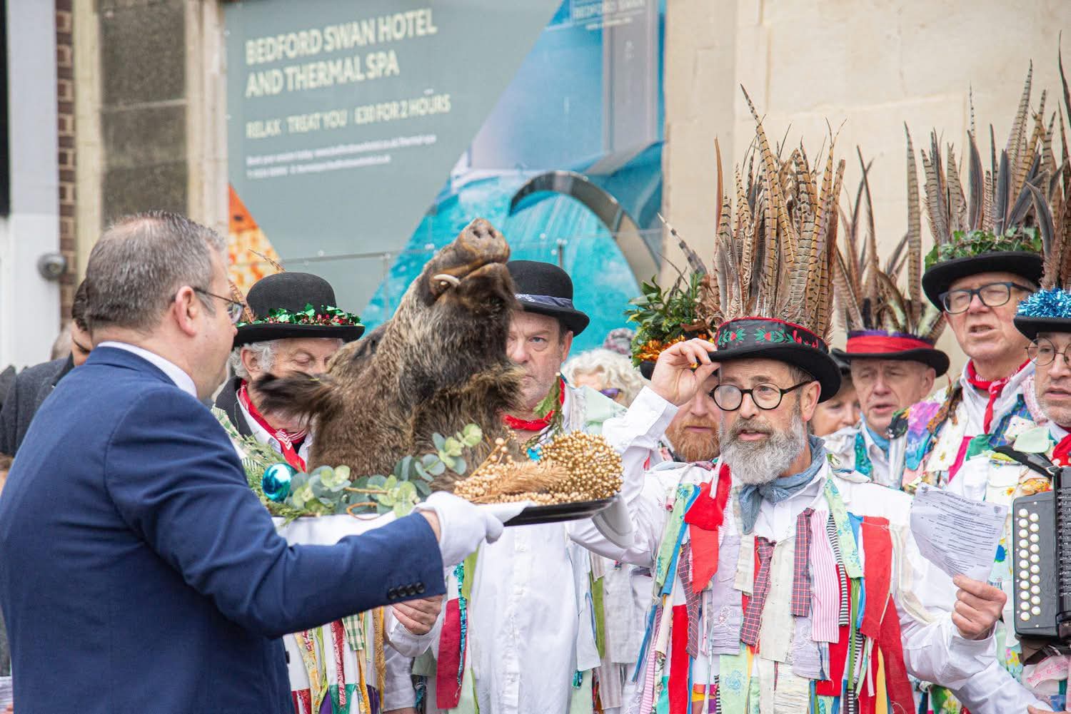 The Bedford Morris Men revived the tradition in Bedford in the 1970s, and the custom is now observed with riotous, festive dancing and a procession with the garlanded Boar’s Head. The boar's head, incidentally, spends the rest of the year hibernating in the cellar of The Swan Hotel - as far as we know, this is its only annual outing.
