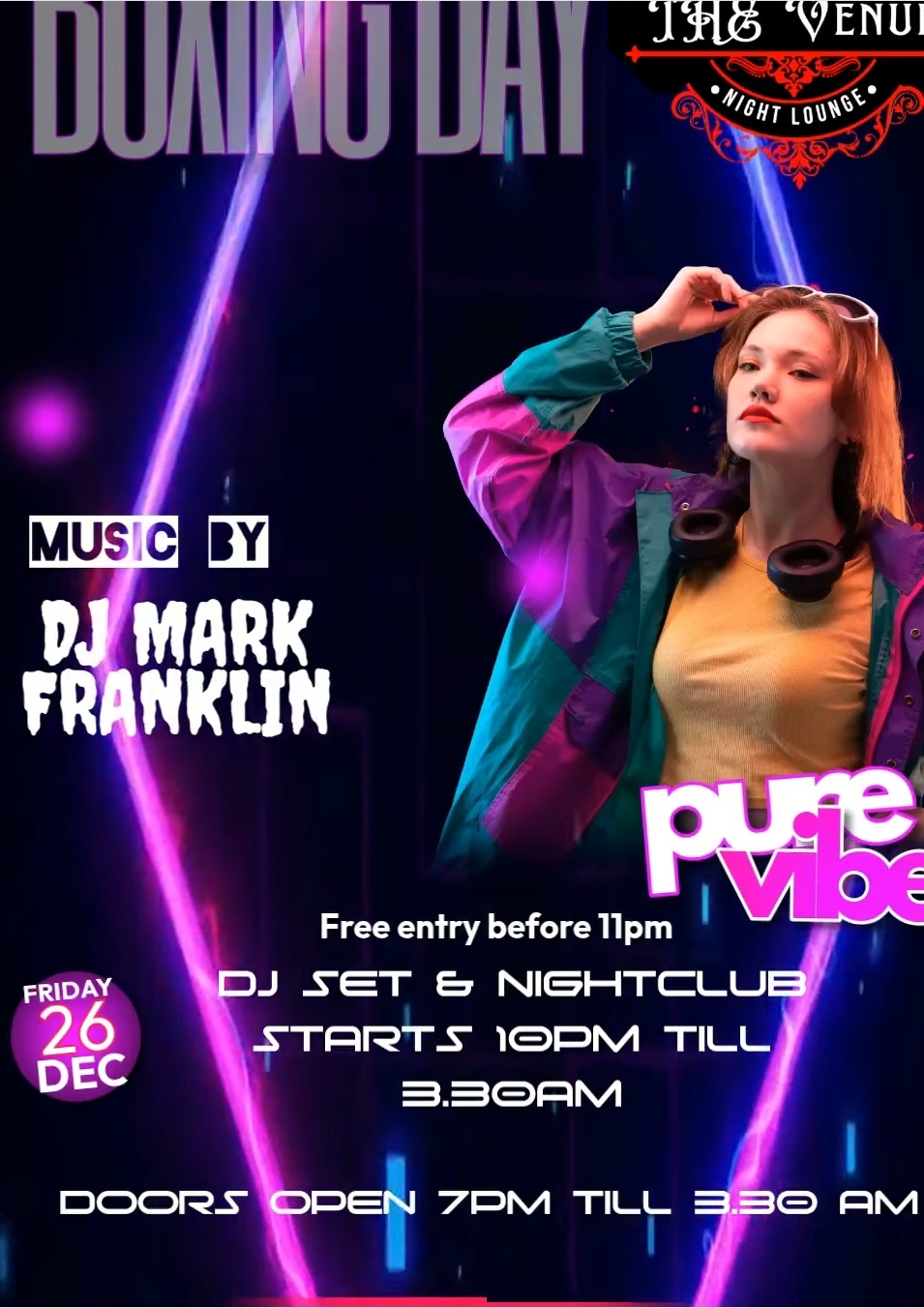 Christmas dinner is done… now it’s time to DANCE IT OFF! Join us this Boxing Day at The Venue, Biggleswade for a massive party with the one and only DJ Mark Franklin taking over the decks all night long!