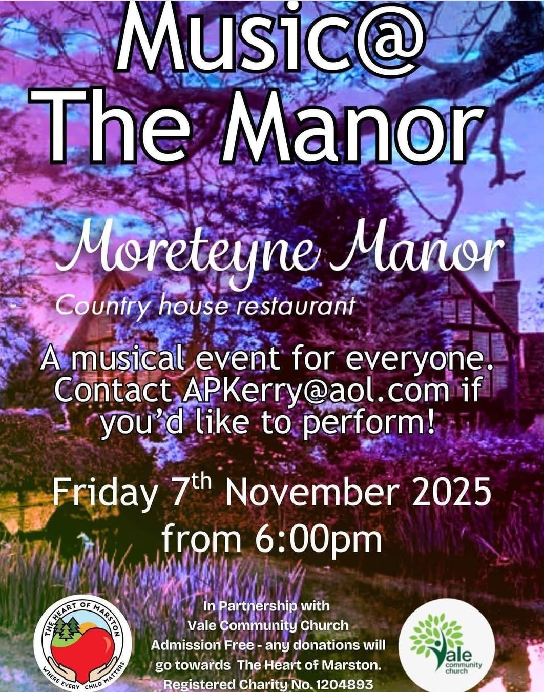 🎼 Vale Community Church would love to see you on Friday 7th November 2025 at Moreteyne Manor.