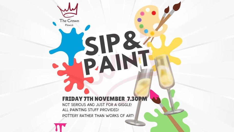 🎨 Just for fun! Gather up some friends and come and join us for some drinks and a paint at The Crown in Flitwick on Friday 7th November 2025 from 7.30pm.