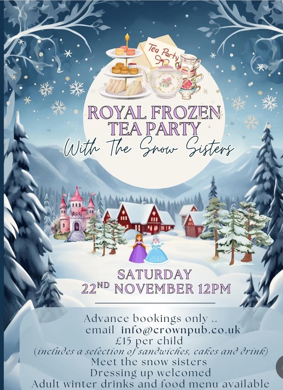 ❄️ Join us at The Crown in Henlow for an afternoon filled with giggles, glitter, and lots of yummy treats!